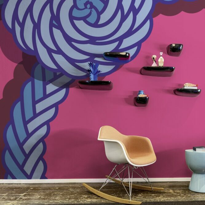 The installation, housed within the “Le Stanze” showroom, serves as a creative collaboration between Venier and a group of Afghan and Syrian refugee women. Here, the craft skills of these resilient artisans take center stage, transformed into vibrant pom poms, braids, and upholstery under Venier’s guidance.